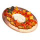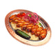 Chicken breast pieces with white rice, grilled tomato,grilled pepper and pieces of pide bread. Two skewers. Itis marinated with dairy products.